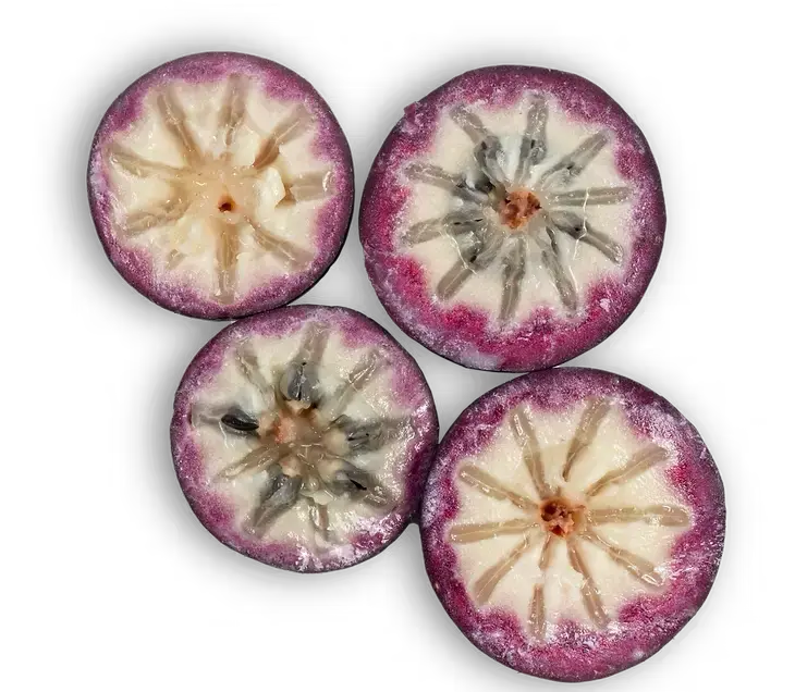 Al cortarlo por la mitad, sus semillas negras asemejan una estrella, de ahí su nombre en inglés: star apple.