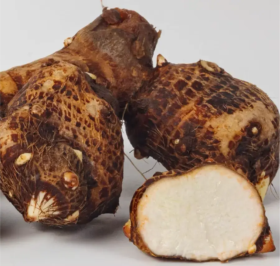 El kukut makal presenta una apariencia distintiva con su piel de un profundo café oscuro, algo rugosa y salpicada de pequeñas vellosidades. Al cortarlo, su pulpa revela un blanco cremoso, y en estado crudo, tiene una textura similar a la yuca. No obstante, es al cocerse que muestra su verdadero carácter: su sabor es agradable, suave y delicado, lo que lo convierte en un ingrediente versátil en la cocina.